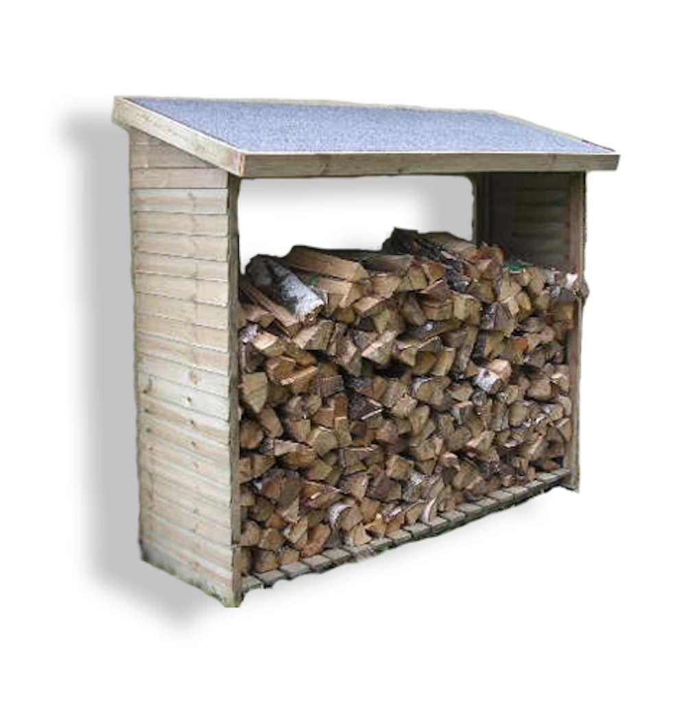 Abri bûcher mono pente 329 x 122 x H. 195 cm - Madriers bois, toiture ondulées