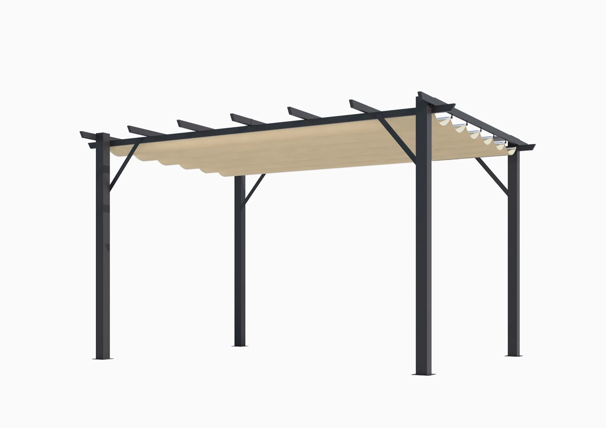 Pergola aluminium gris anthracite - 12 m² - Poteaux 10x10 cm - Toile polyester gris 280 gr/m²