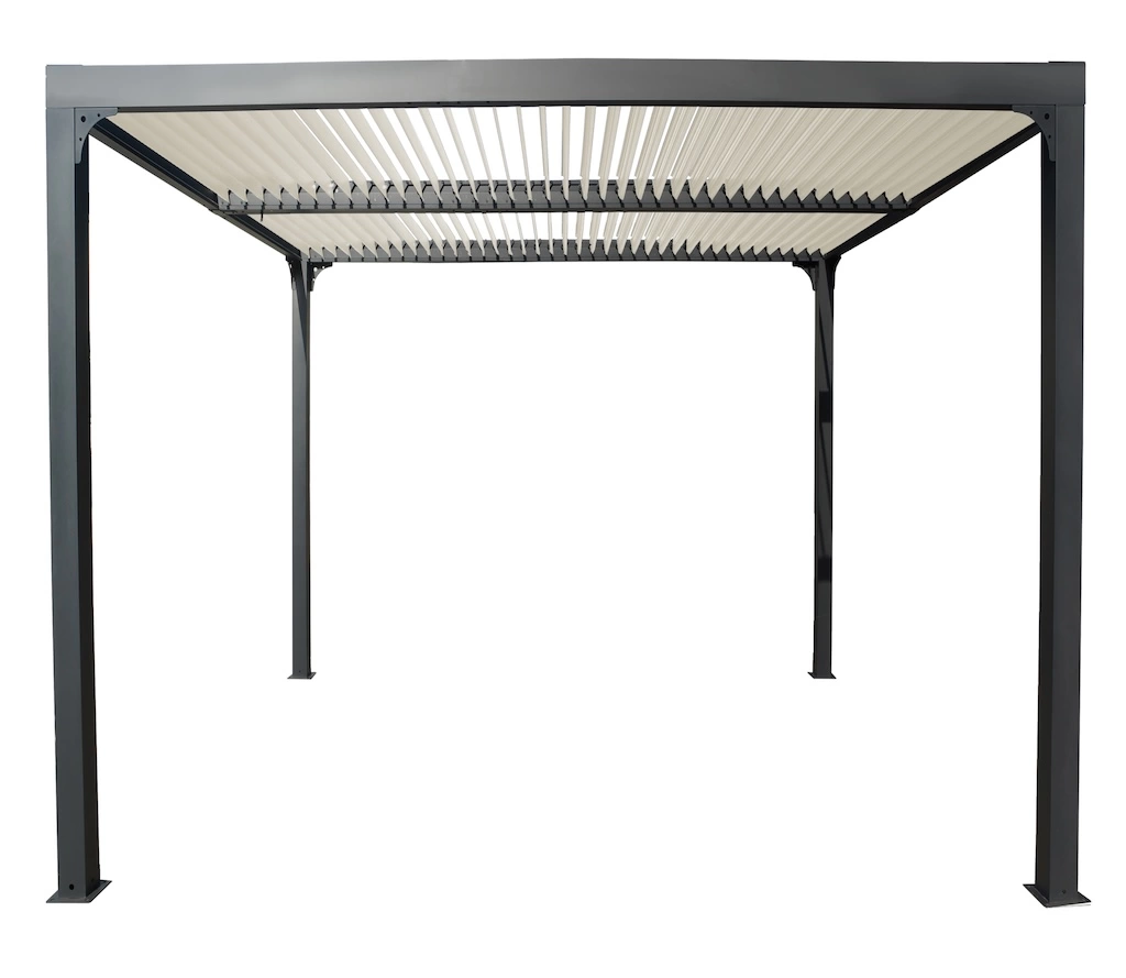 Pergola aluminium gris anthracite - 12 m² - Poteaux 10x10 cm - Toile polyester écru 140 gr/m²