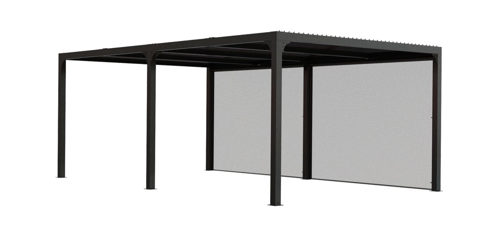 Afin d'optimiser votre confort, la pergola bioclimatique PER 3660R BI est équipée de 2 rideaux latéraux qui permettent de "fermer" un des côtés de 5,98 m.